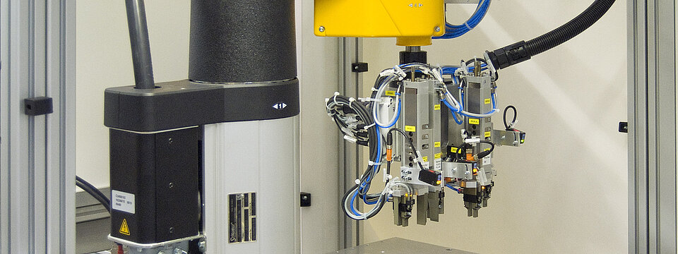 Vollautomatische robotergestützte Palettier- und Abstapelsysteme für die gepufferte Bereitstellung von Serienbauteilen.